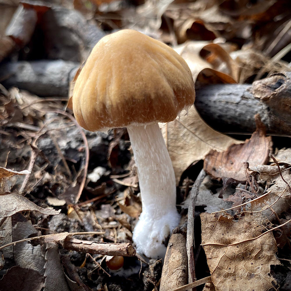 Not much is growing in my patch of woods during this “in between” spring weather that can’t decide if it’s going to be warm or cold, rainy or sunny, and with or without gale force winds. I found virtually nothing in the woods during my walk this weekend but did find two of these in between the edge of the woods and the road. Possibly psathyrella candolleana.